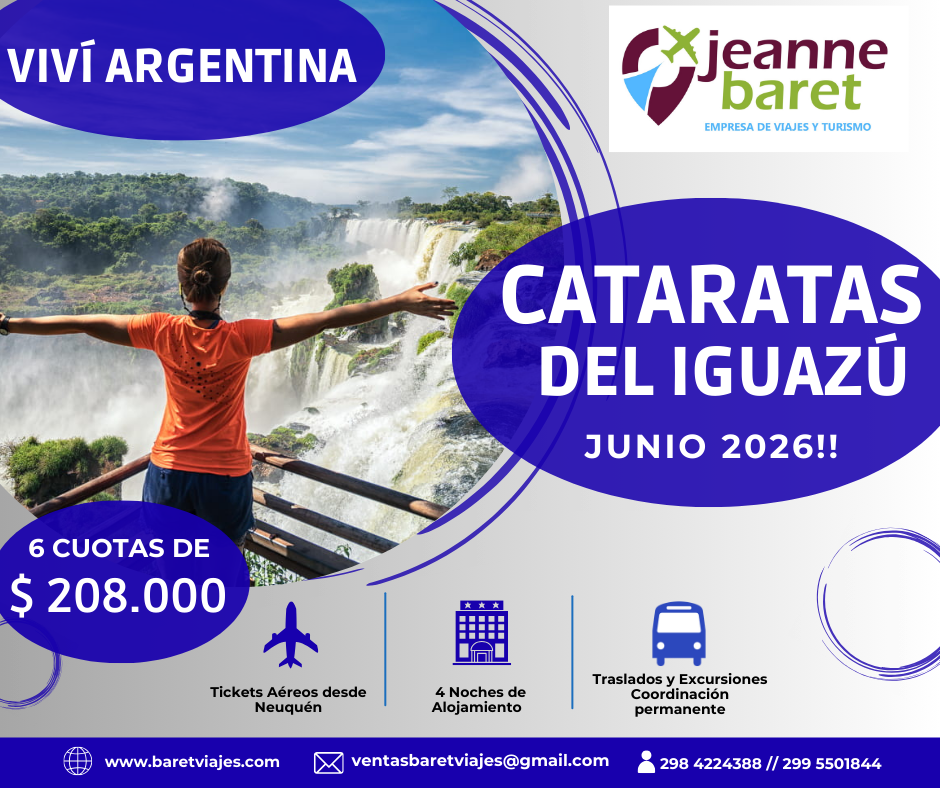Sale NQN: 07.00hs / Llega IGUAZÚ 13.25 hs