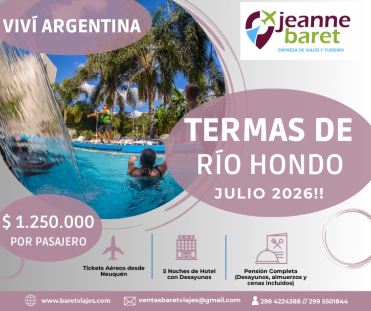 Sale NQN: 07.00hs / Llega IGUAZÚ 13.25 hs